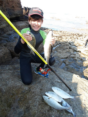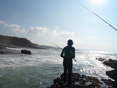 Apanho algumas bogas e mais um sargote, o peixe volta a falhar, o João faz-me sinal para ir para ao pé dele que estava a sentir peixe, vou até lá e tiro mais um bom sargo e 2 salemas.