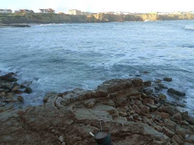Ainda faltava uma hora e pouco para o final e continuo caminho, fiquei a pescar no cavalinho mas na parte norte, a pescar nas escoas das pedras numa zona bem espumada, na esperança de apanhar mais alguns sargos.